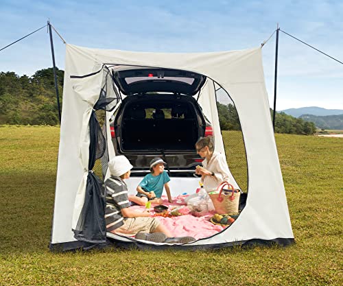 - Universal Fit:The SUV tent features an elastic sleeve to tightly cover 99% cars, SUVS, VANS, CUVs, MPVS' tailgate