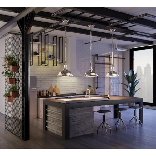 - VINTAGE INDUSTRIAL DESIGN: Add focused task lighting packed with industrial flair with the Fresnel Lens Collection Brushed Nickel One-Light Industrial Hanging Pendant Light ideal for any kitchen island, bar, breakfast nook, or home office in coastal, transitional, urban industrial, or vintage electric settings.