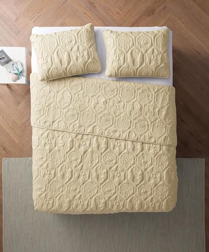 VCNY Home – Queen Quilt, 3-Piece Lightweight Embossed Beach Bedding Set with Matching Shams, Coastal Room Decor (Shore Tan, Queen)